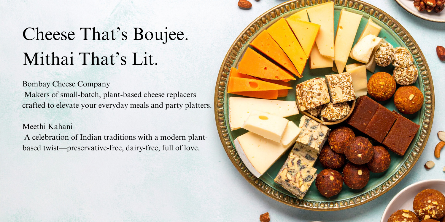 Together, Meethi Kahani and Bombay Cheese Company bring you the best of both worlds: handcrafted plant-based mithai and gourmet cheese replacers β thoughtfully made with 100% plant-powered ingredients and love.